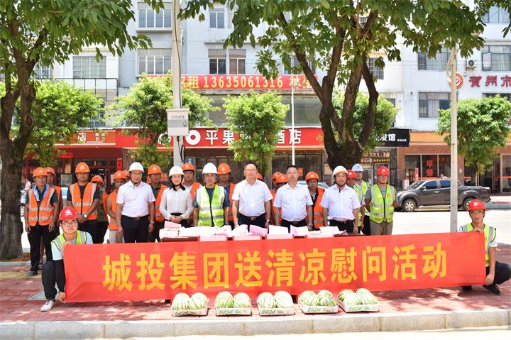 連日來,賀州市頻繁發(fā)布高溫預(yù)警,熱浪襲人。7月27日,為傳達(dá)城投集團(tuán)黨委的關(guān)心關(guān)愛,集團(tuán)黨委書記、董事長黃俊到賀州市城市品質(zhì)提升改造項(xiàng)目(城區(qū)道路白改黑)開展送清涼慰問活動(dòng),為高溫下堅(jiān)守一線的勞動(dòng)者送上西瓜、涼茶等防暑降溫慰問品。
