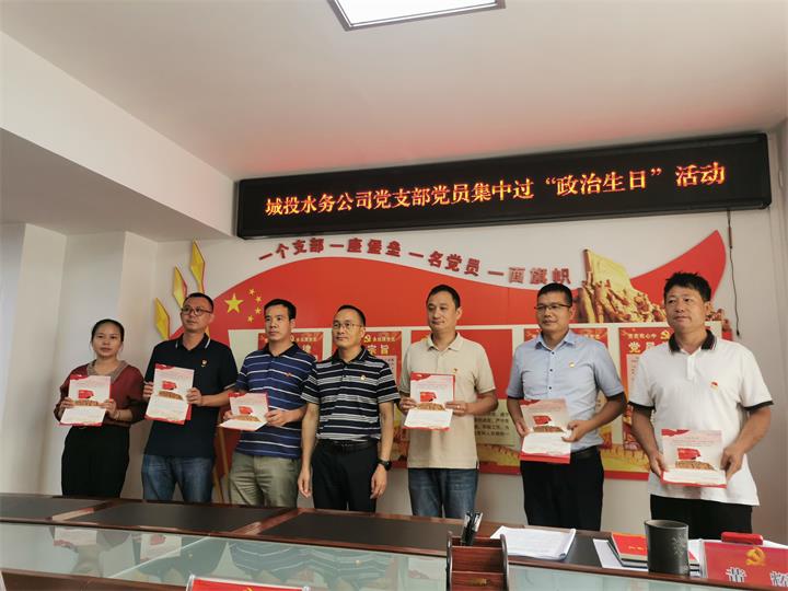 會議還開展了黨員集中過“政治生日”主題黨日活動。在支部書記曹國斌同志帶領下,林峰、李宏強、劉錄猛、謝慶、馬小偉、覃宇霞等6名同志面對黨旗重溫入黨誓詞,莊重向黨承諾“我志愿加入中國共產黨,擁護黨的綱領,遵守黨的章程……”曹國斌同志向過“政治生日”黨員贈送了賀卡及送上了祝福。政治生日賀卡上記錄著每個黨員的入黨紀念日、黨齡,莊嚴地寫著支部寄語,每一字每一句都承載著黨組織的期望和鼓勵。收到“政治生日”賀卡的黨員同志紛紛表示,雖然只是一張小小的賀卡,但是承載著黨組織的殷切期望,既是鼓勵,更是鞭策。