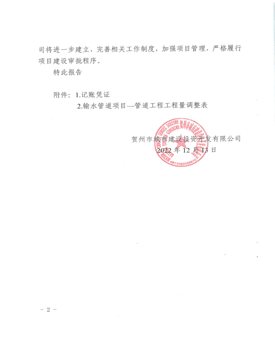 城投公司關(guān)于望高至擔(dān)桿嶺水廠原水輸水管道項目結(jié)算審計發(fā)現(xiàn)問題整改情況報告